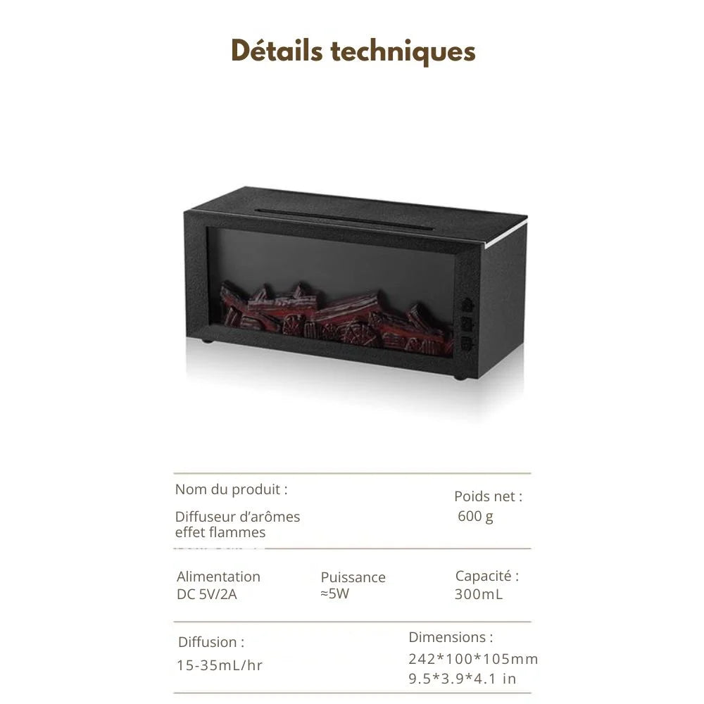 Découvrez ce Diffuseur d’Arômes effet flamme (300 ml) : un appareil 4-en-1 qui fait humidificateur, diffuseur, veilleuse et déco cheminée.