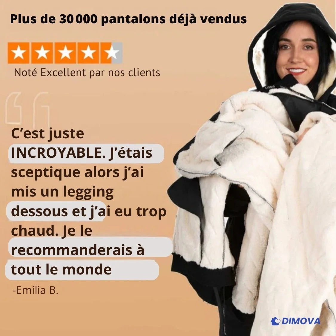 Vos jambes sont enveloppées dans une chaleur douce, aucune goutte ne passe, aucun courant d’air ne s’infiltre.