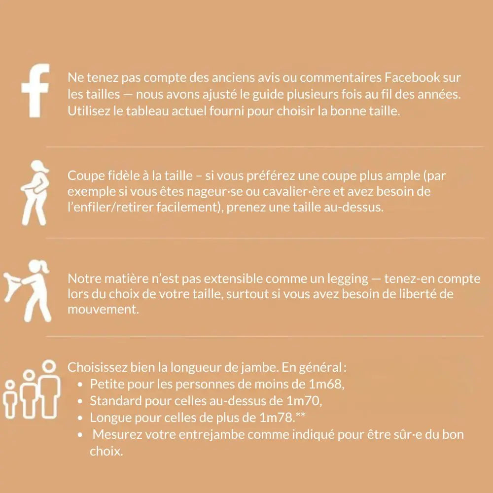 Disponible du XS au XXXL, avec 3 longueurs de jambe (Petite, Standard, Longue) pour convenir à toutes les morphologies.