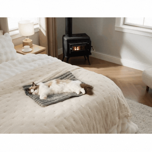 Oui, absolument. Ce tapis utilise la chaleur naturelle de votre animal pour la lui refléter doucement. En quelques minutes, la surface devient agréablement tiède, sans aucun branchement. C’est une chaleur continue, naturelle et sécurisée.